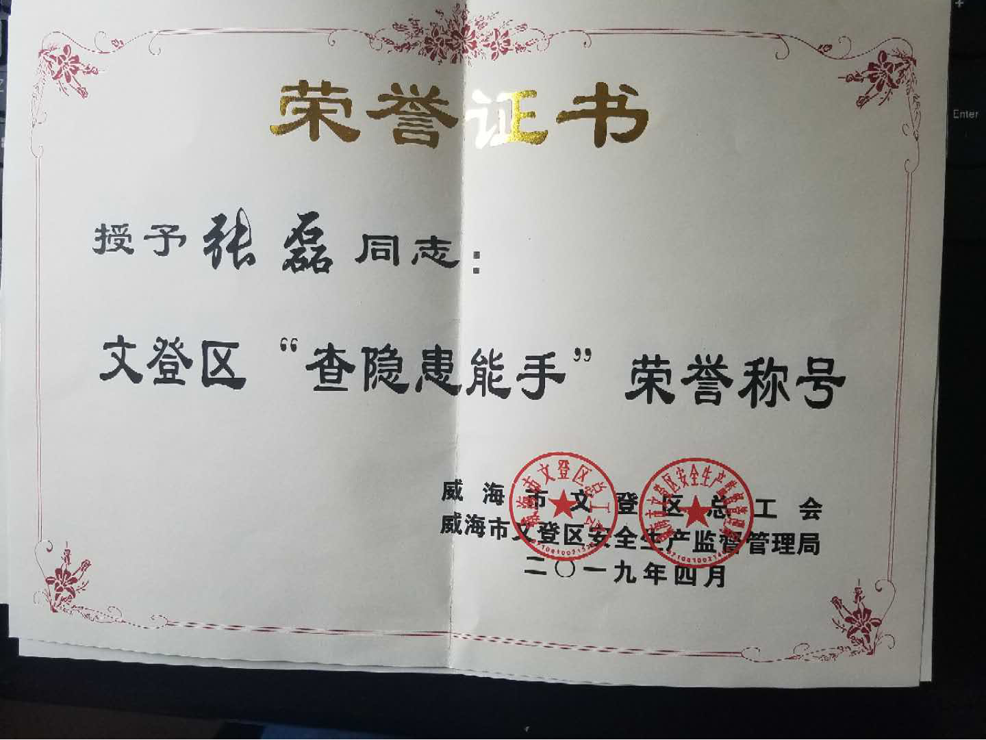 2019年4月28日上午,由威海市文登區(qū)總工會、威海市文登區(qū)安全生產(chǎn)監(jiān)督管理局聯(lián)合主辦的“文登區(qū)查保促安康競賽”、“文登區(qū)活力工會、文登區(qū)優(yōu)秀職工”頒獎典禮在文登區(qū)總工會盛大舉行,威海寶隆分別榮獲文登區(qū)“查保促安康”競賽先進單位、文登區(qū)“活力基礎(chǔ)工會”稱號,鑄鍛廠廠長向科陽榮獲文登區(qū)“優(yōu)秀職工”稱號,安全員劉思誠、張磊、胡安宏榮獲文登區(qū)“查隱患能手”榮譽稱號。