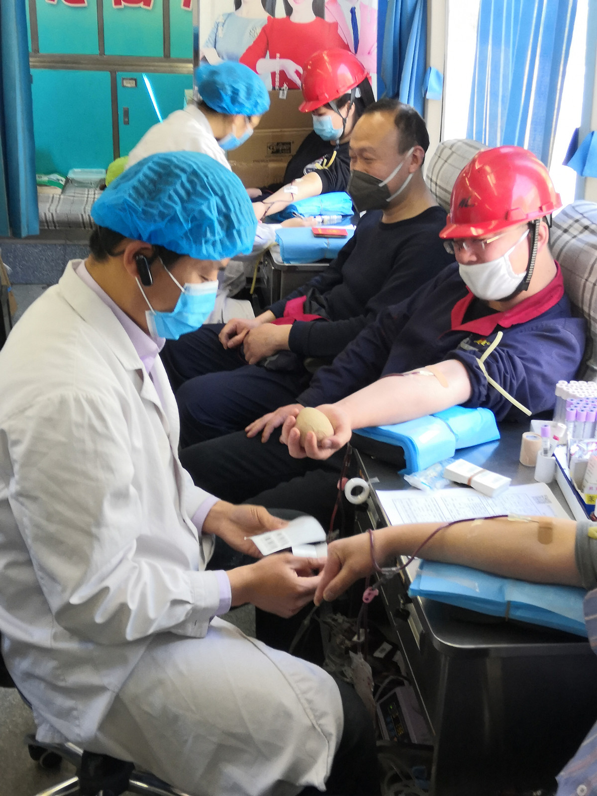 寒風(fēng)中,獻血職工在醫(yī)護工作人員的指導(dǎo)下,認真填寫登記表、測量血壓、抽血化驗,經(jīng)血液檢驗合格后開始無償獻血。這些前來獻血的職工中,既有工作多年的老職工,也有剛剛參加工作的新職工,還有許多職工已經(jīng)多次參加無償獻血活動。經(jīng)過職工們的踴躍獻血,本次無償獻血量為16000毫升。