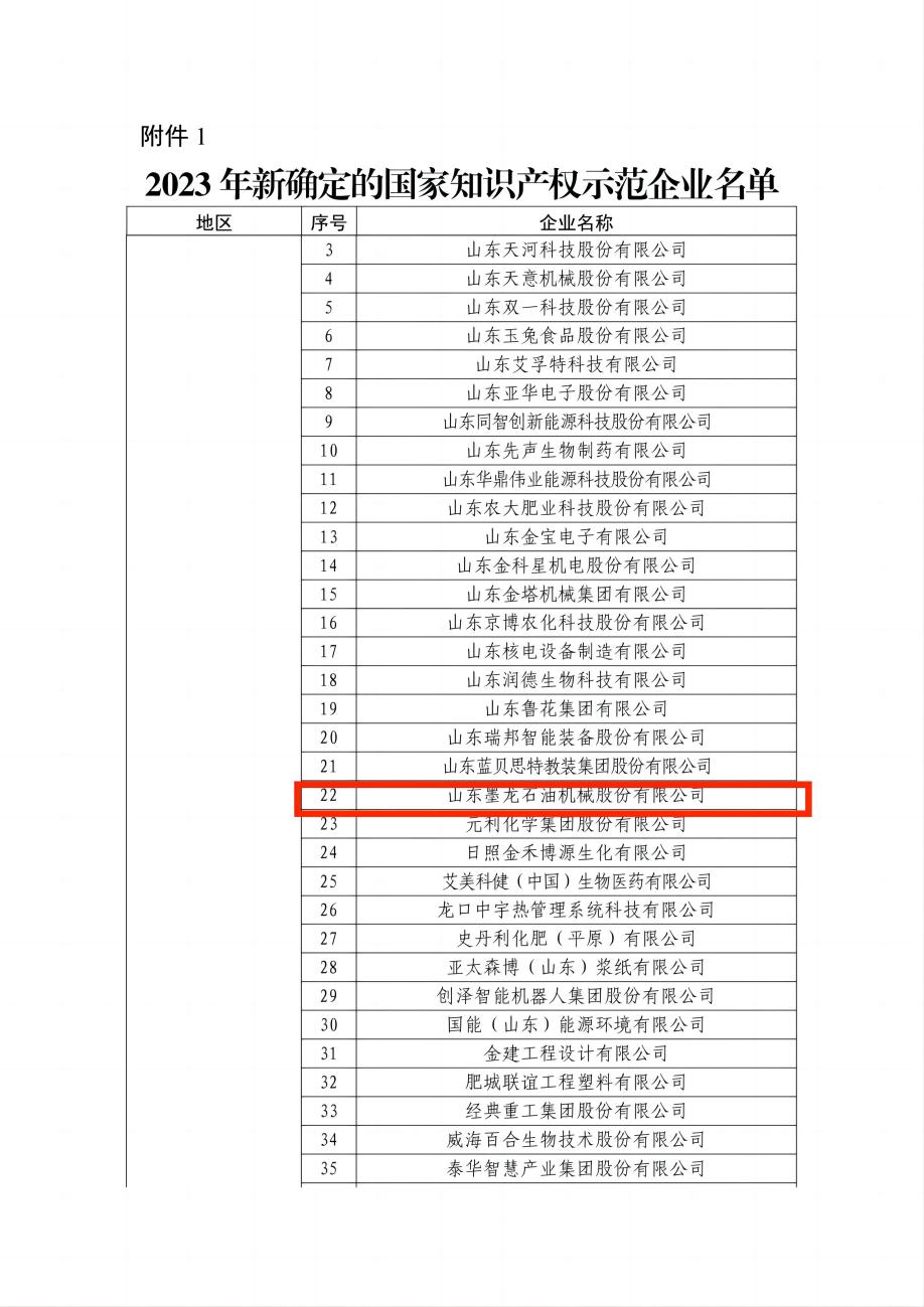 2023年11月29日,國家知識(shí)產(chǎn)權(quán)局公布了2023年新一批及通過復(fù)核的國家知識(shí)產(chǎn)權(quán)示范企業(yè)和優(yōu)勢企業(yè)名單,山東墨龍石油機(jī)械股份有限公司(以下簡稱“山東墨龍”)成功入選,成為壽光市首家國家知識(shí)產(chǎn)權(quán)示范企業(yè)。