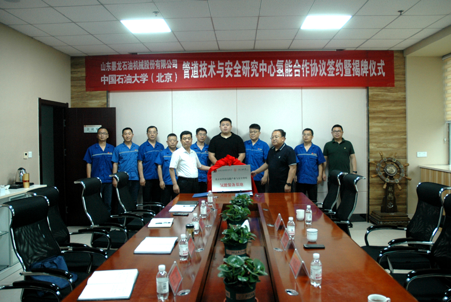 2024年7月4日上午,山東墨龍與中國石油大學(xué)(北京)舉行氫能合作協(xié)議簽約暨合作項(xiàng)目揭牌儀式。山東墨龍董事長(zhǎng)韓高貴、中國石油大學(xué)(北京)管道技術(shù)與安全研究中心主任董紹華教授出席簽約儀式,并為合作項(xiàng)目氫能裝備基地、油氣管研發(fā)基地揭牌。