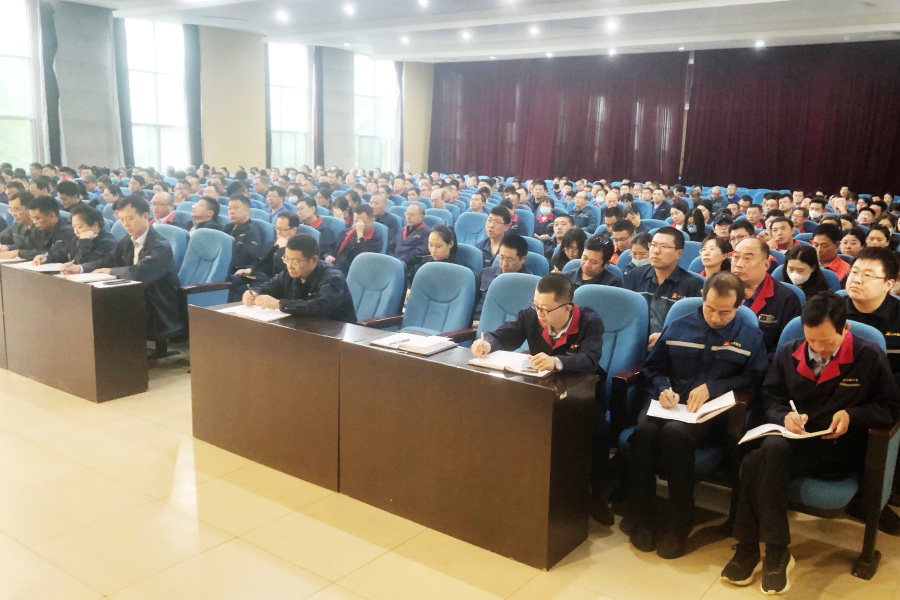 會議由總經(jīng)理助理鮑墨港同志主持,董事長、總經(jīng)理韓高貴同志做會議總結(jié)并講話,公司生產(chǎn)、技術(shù)、質(zhì)管、營銷等管理人員共計(jì)460余人參加會議。